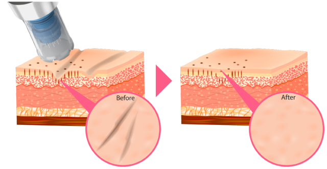 瘢痕組織を再構築し、凹凸のある肌を滑らかに整えます。