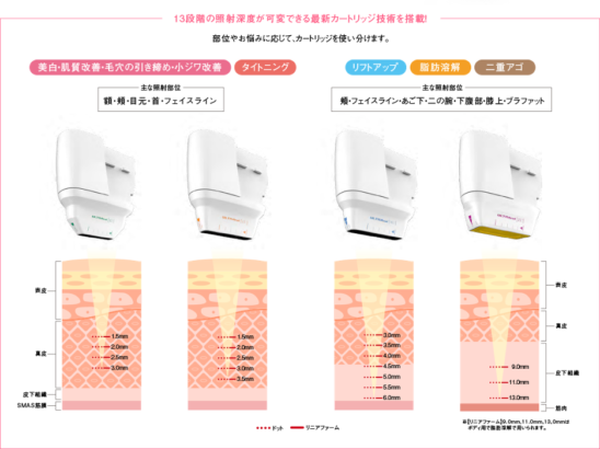 - リニアファーム:脂肪層に作用することで、輪郭の引き締めに効果を発揮